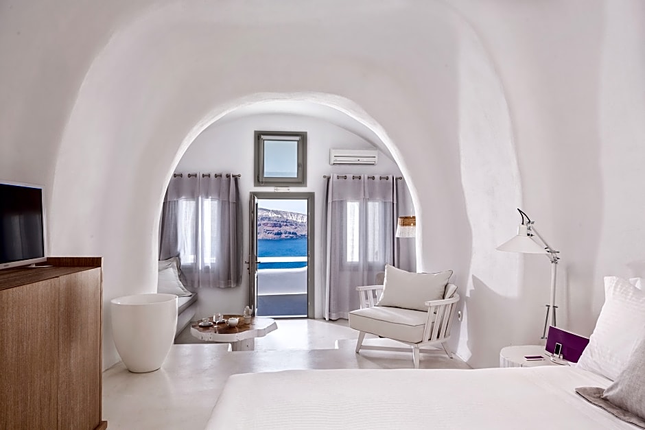 Boasting an outdoor hot tub, this Cycladic-style suite opens out to a terrace with Caldera and Aegean Sea views. It includes a flat-screen, satellite TV. It also has a mini-bar. Featuring free toiletries, the private bathroom has bathrobes and a hairdryer. Some of the suites have the private Jetted Tub located on the ground floor.
